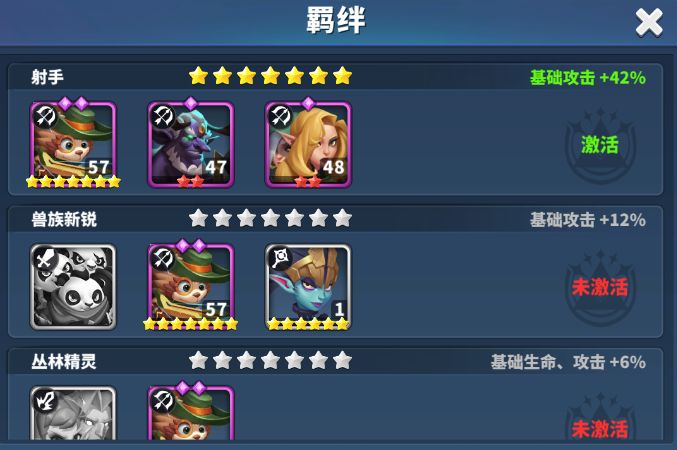 【羁绊】是战力系统最难开启的部分。每个军团都有固定的【羁绊】,每个【羁绊】都固定的军团组合,获得指定的军团,就能解锁【羁绊】。【羁绊】解锁后,还能通过军团【升星】提高【羁绊】星级,星级越高,战力加成越高。