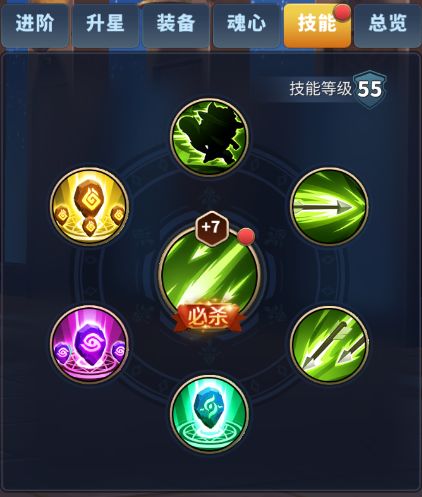 【技能】是战力系统中战力加成最少但实用性最强的部分。每个军团有6个普通【技能】和1个必杀【技能】,6个普通【技能】分为3个核心【技能】和3个属性【技能】,4星军团就能解锁3个核心【技能】,后续每【升星】一个星级,就会解锁1个属性【技能】。而必杀【技能】是受【进阶】影响的,每【进阶】一次,才能升级必杀【技能】。(【进阶】能提高普通【技能】等级的上限)