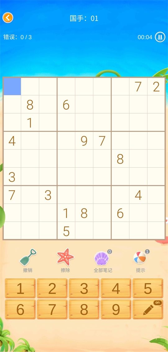 新版本策划大大将为大家准备一个以沙滩为主题的数独棋盘,使用这个皮肤后,能够听到海浪的声音,感觉自己身处广阔无际的沙滩,听着写意的海浪声,别有一番风味!