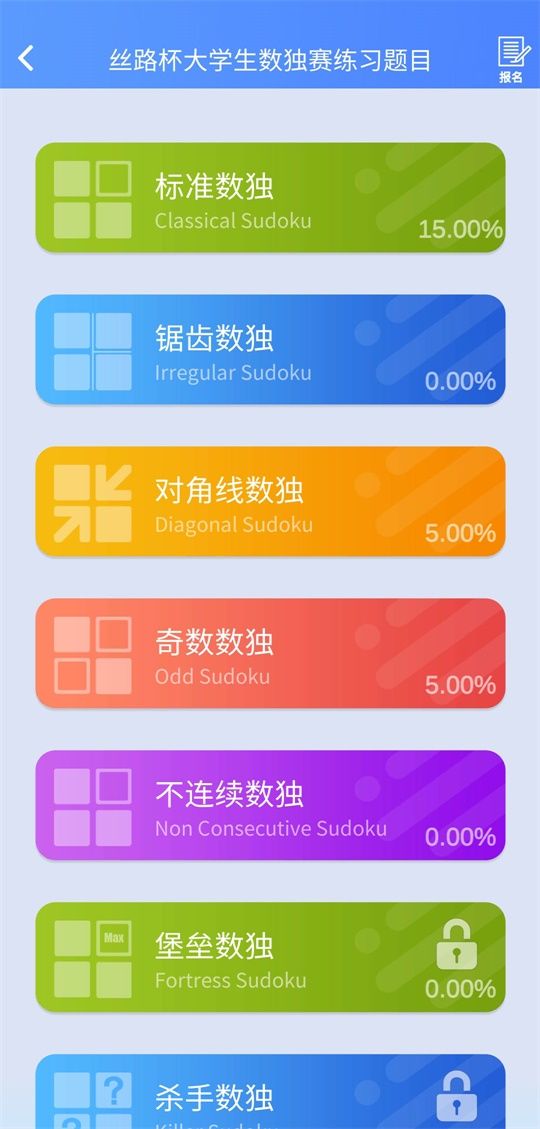 这次题目类型除了app原有的特色数独类型外还新增了锯齿数独,奇数数独,不连续数独,堡垒数独!