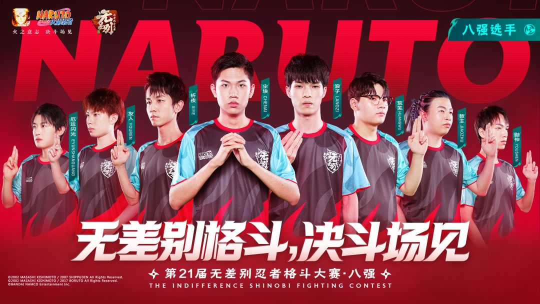 昨晚第21届无差别忍者格斗大赛决赛首日,学员们都看了吗?经过激烈角逐,荒芜、浪子、鼬神、友人、析夜、尘埃、教主、厄运闪光成功晋级8强,他们将在今晚18:00发起一下轮对胜者组的冲击!