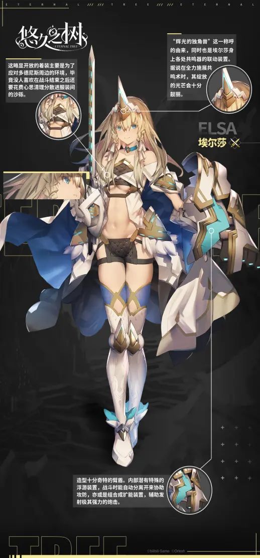 出生于探求者家庭的少女。埃尔莎从小便对战斗和冒险有着浓厚的兴趣,在父母的指导下,她在年幼时便展现出了惊人的天赋。自学院毕业之后,埃尔莎顺理成章地加入了父母所在的行会“艾尼亚德”,其过人的实力和优良的性格受到了同僚们的广泛好评,被众人寄予厚望。与她亲近的人似乎都会称她为“埃露”。