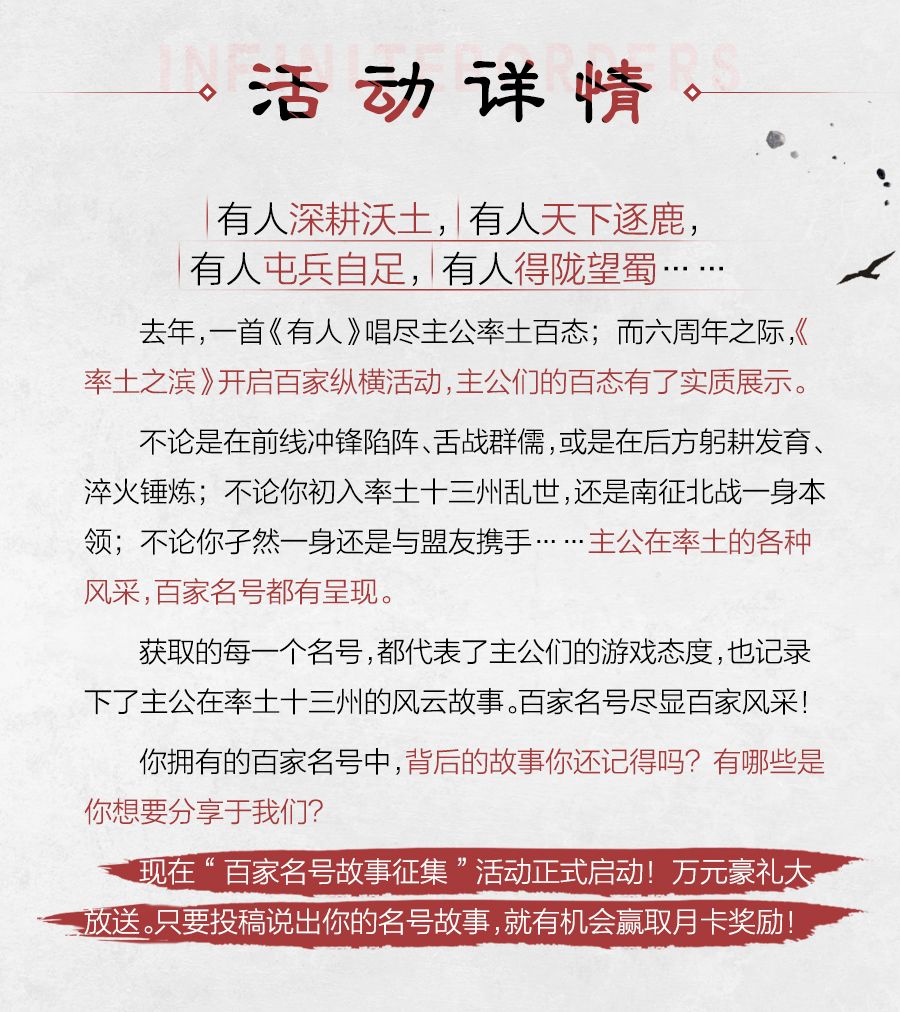 我有月卡,你有故事吗? ——率土百家名号故事征集