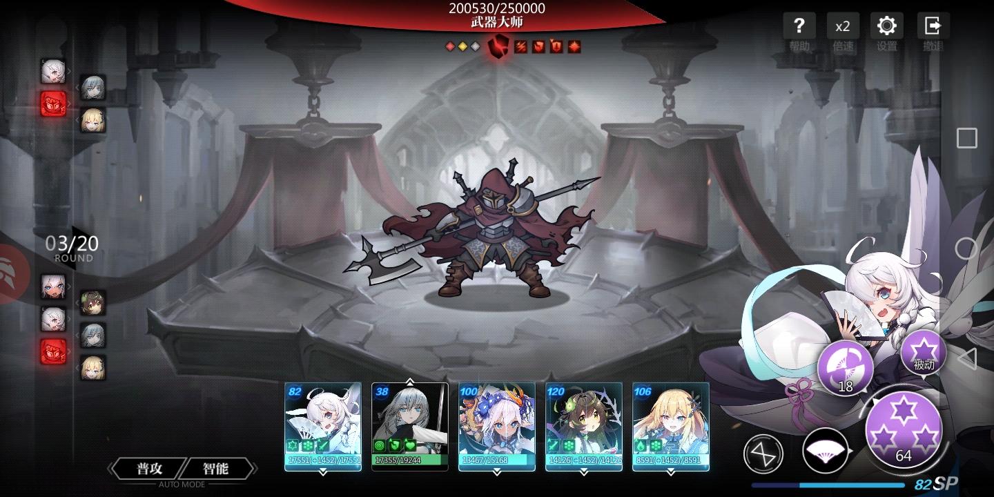 为了对比的明显点我还把这两个紫升了一下,然后对象选择了没有魔法弱点的骑士,破盾后输出