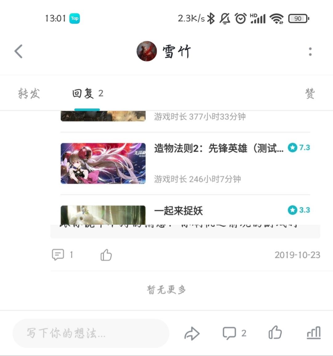 时间到了19年秋,突然再次看到了造物的测试消息,很惊讶,但还是毫不犹豫参加了,也是这个时候,通过造物知道了tap(可能更早?不过无所谓了),之后就很长的一段时间里就住在了tap,也开始了我的游戏启蒙运动(玩过那里面的几百个游戏就是这么来的)。
