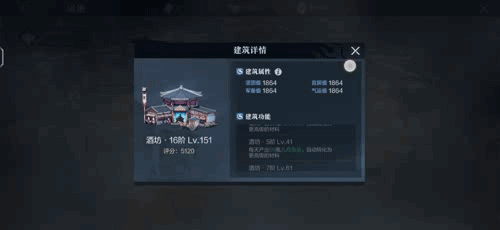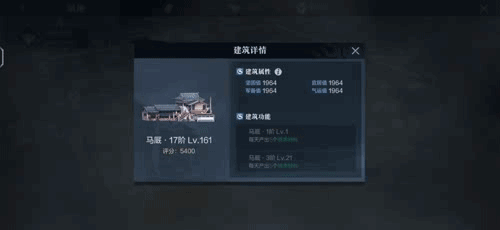 除了属地的整体阶级,属地中的不少建筑在升级到一定阶级后也能够激活特殊的加成效果,演武台,酒坊,马厩等资源类型建筑还能够加速资源获取,助力战力提升。