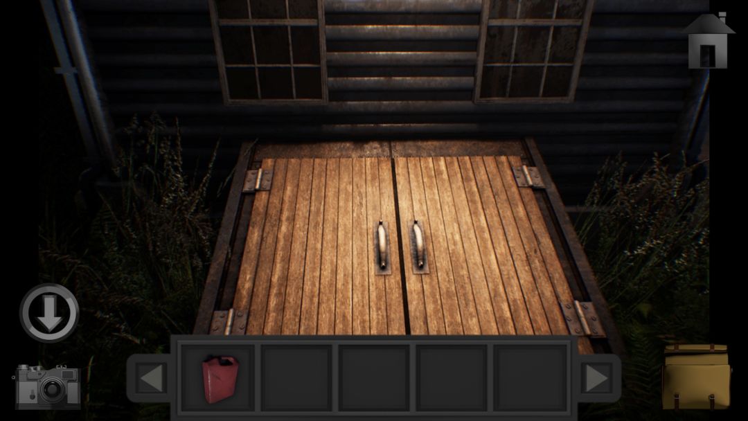 小屋里获得空桶和爬梯。