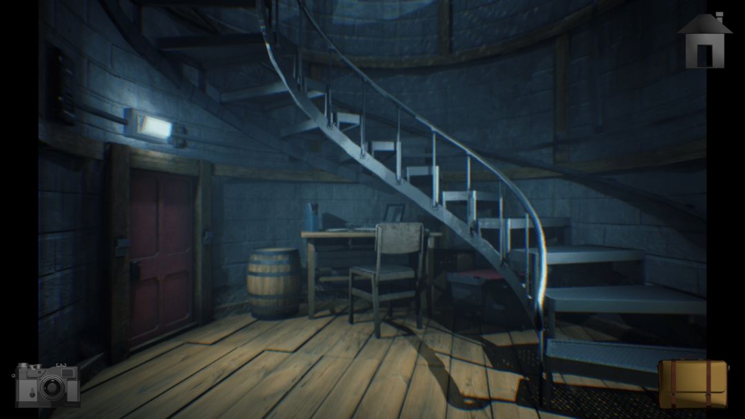 沿楼梯向下走到达灯塔底部,从桌上拿到镜片。把门上的挡板拿掉,直接从门出灯塔。