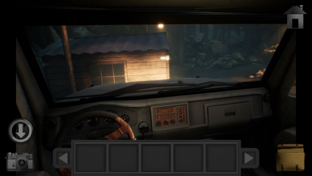 用车钥匙把车灯打开,照亮前面的小屋