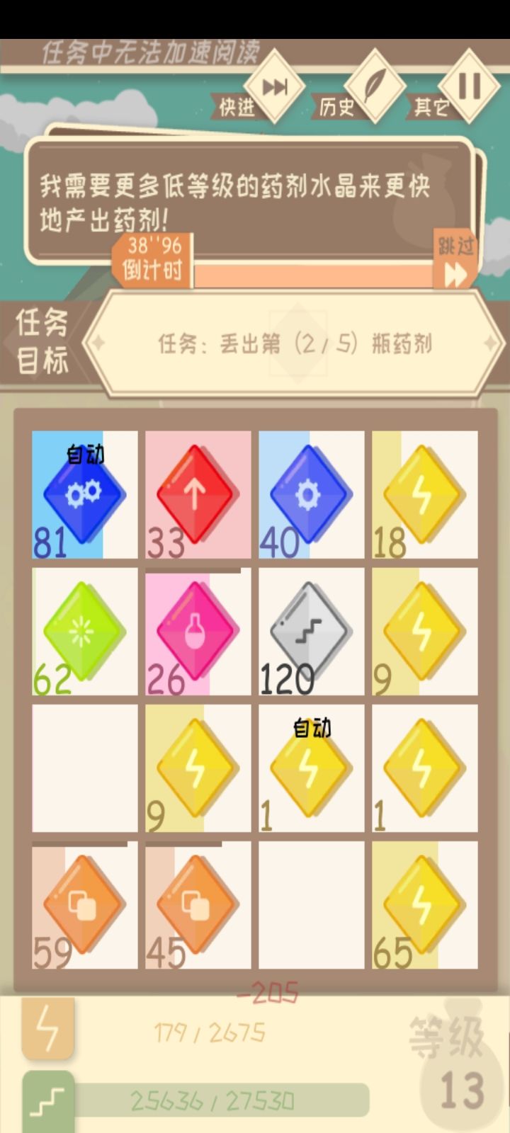 不是把俩一样的拉在一起合成高等级了,就是能量水晶不见了,反正就是手忙脚乱的一通操作。