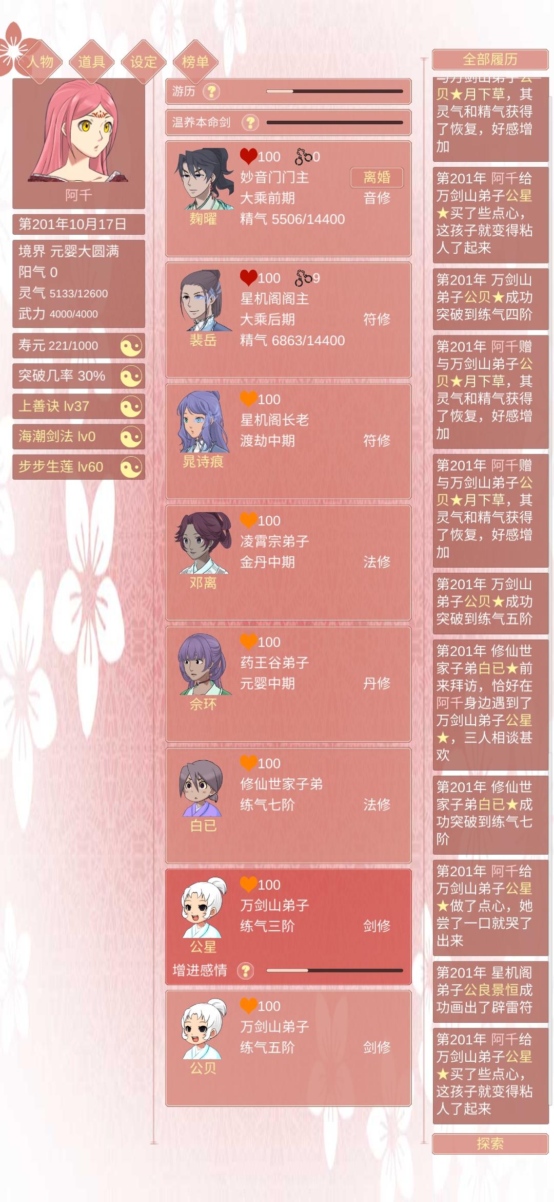 半天没看,就刷了会阳元,回头一看剑尊多了个道侣,我一怒之下直接攻略了对方老婆,试图结交剑尊(顺便药死)