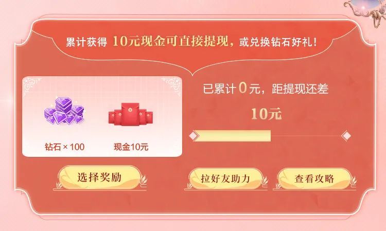 活动期间,首次绑定角色必得5元现金,首次点击分享按钮分享页面再送1元,累计10元可直接提现10元现金(手Q为10Q币)!如红包&企鹅币消耗完毕,舞者们则能选择获取100钻石~