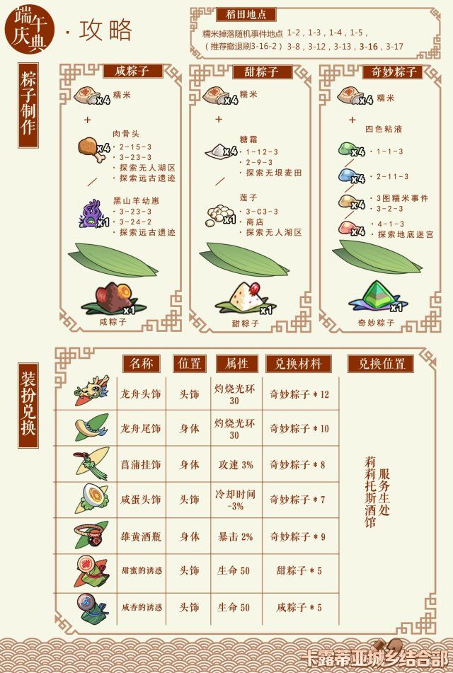 兑换所需材料:糯米*4,糖霜*4/莲子*1=甜粽子*1