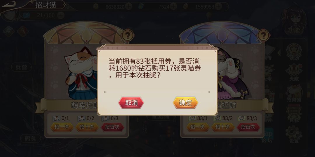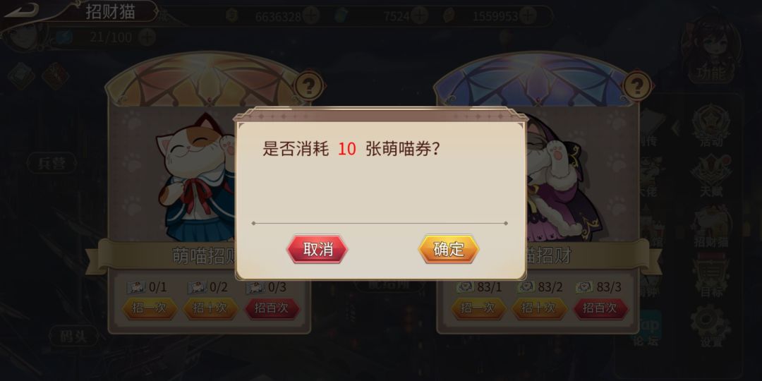 灵猫抽奖显示的是消耗“萌猫券”。