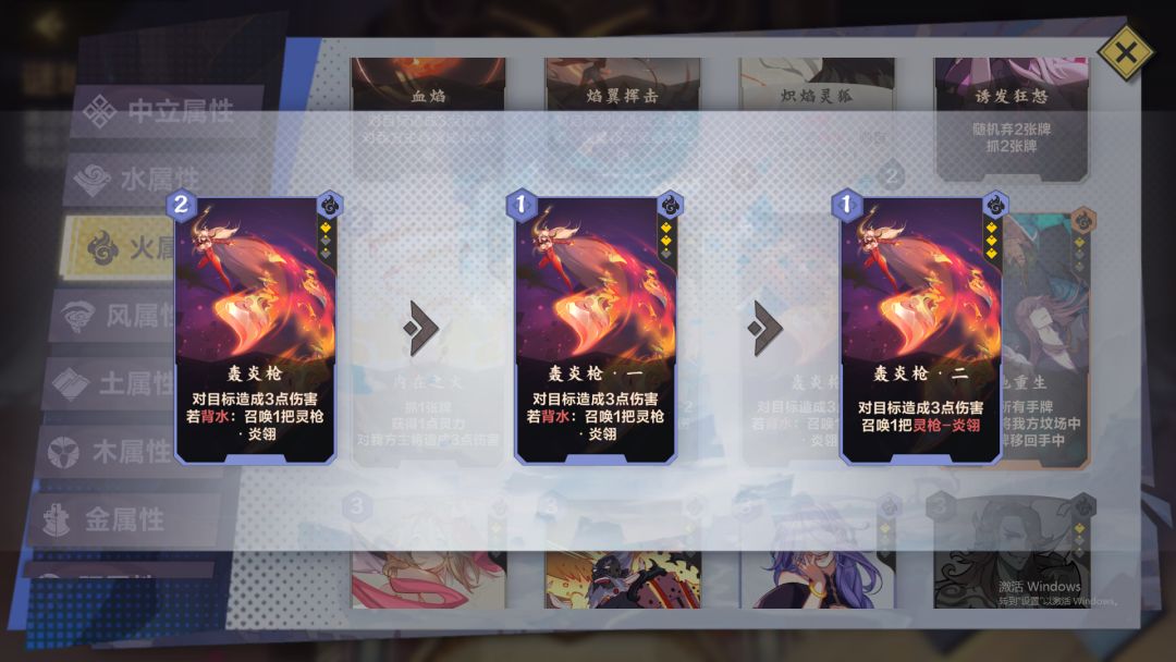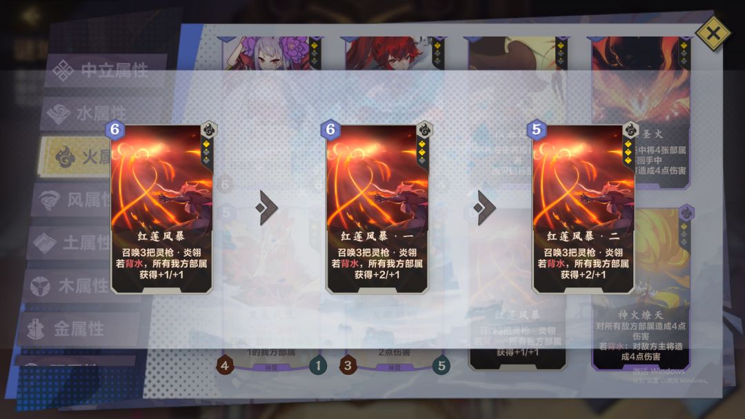 至于部属嘛,没回血没吸血没背水没冲锋还有超过五费的卡通通不要,除了炎枪和灵狐,火属性卡最多带几张白衣圣凰、邪剑仙、火眼麒麟、朱雀化身,像红莲刀客和黑炎凤凰都没必要带,高费卡拿太多的话,前面几个回合都要空过的,很容易翻车,切记切记。