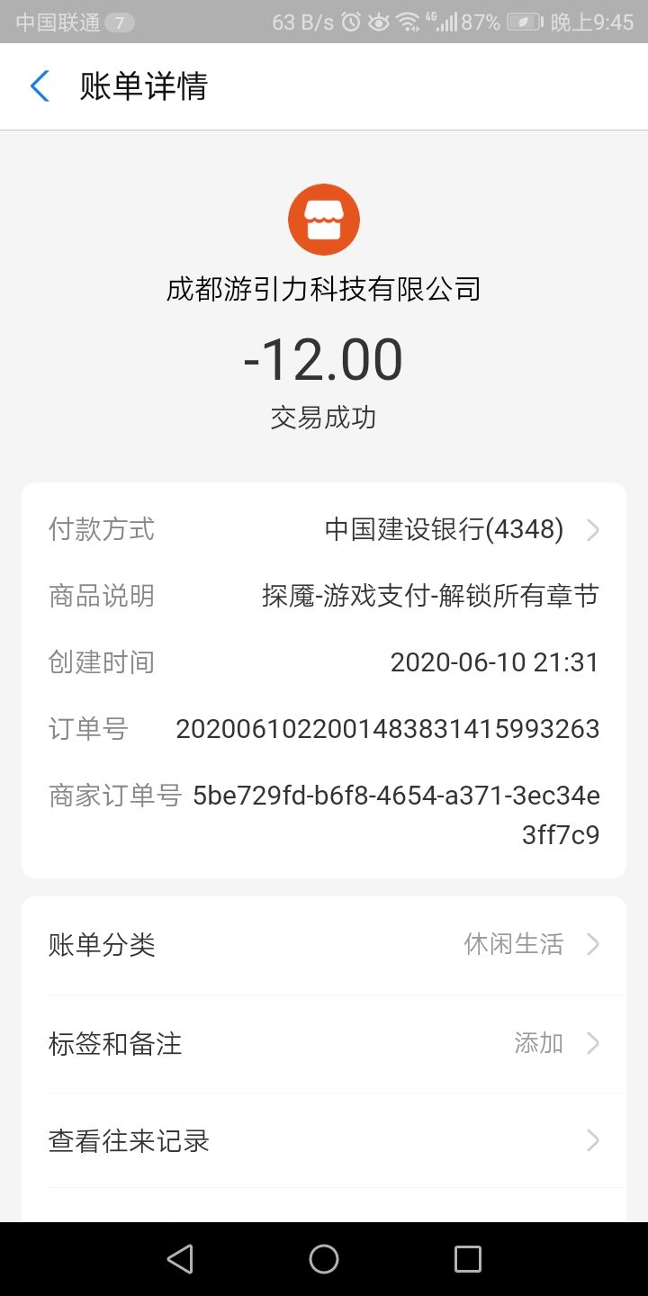 在模拟器支付宝购买要求常用手机付款,结果手机付了却没解锁完整版。