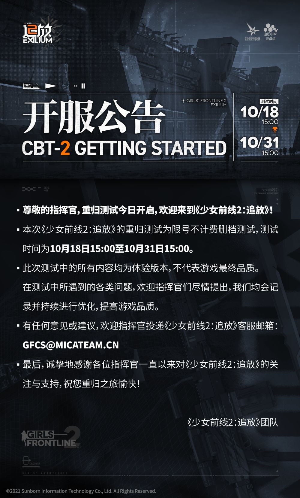 感谢各位指挥官一直以来对《少女前线2:追放》的关注与支持,祝您重归之旅愉快!