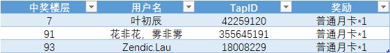 中奖名单:
