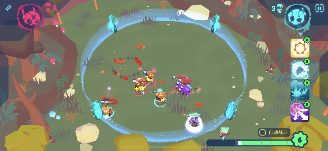 玩了几天,目前10级,开始选了个青蛙开局,这货单体减速,大招吐地上一堆毒持续掉血,怪近身还能跳走,开始用感觉还行,现在觉得没啥毛用,打不了配合。食之无味弃之可惜,头疼…(好处是这种灵活性高的角色竞技场丟里边不容易被克,除非和远程互怼不然难死)