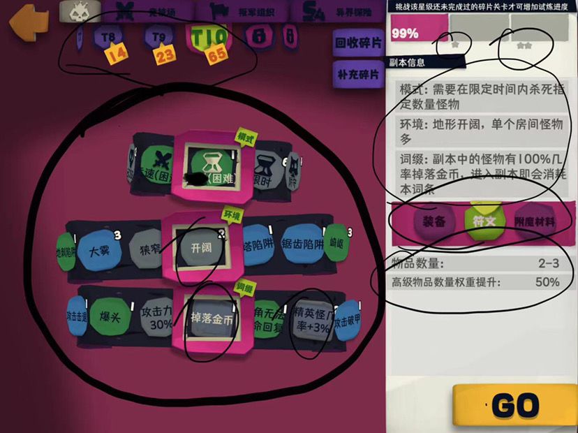 t1、3、4可解锁9颗心(t1很快,t3、4打附魔材料),剩下的主要打t8、9、10解锁一颗心,t10一直打
