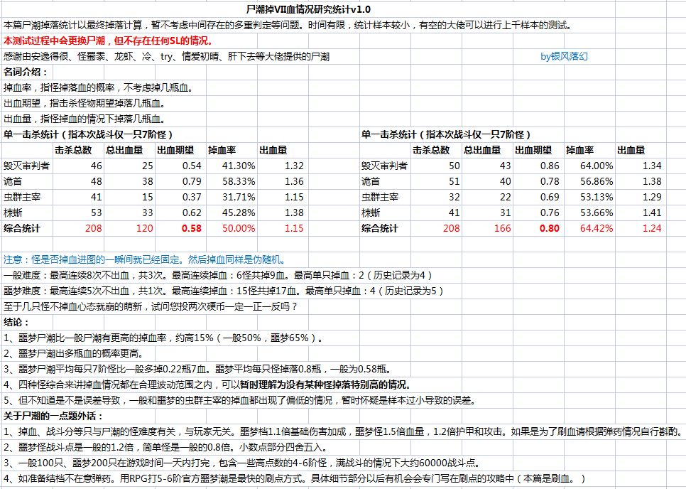 尸潮掉血(七血)的概率统计参考