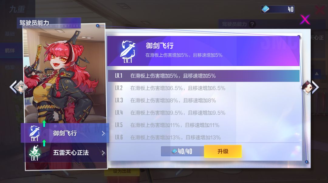 御剑飞行:在滑板上伤害增加5%-13%,且移速增加5%-13%