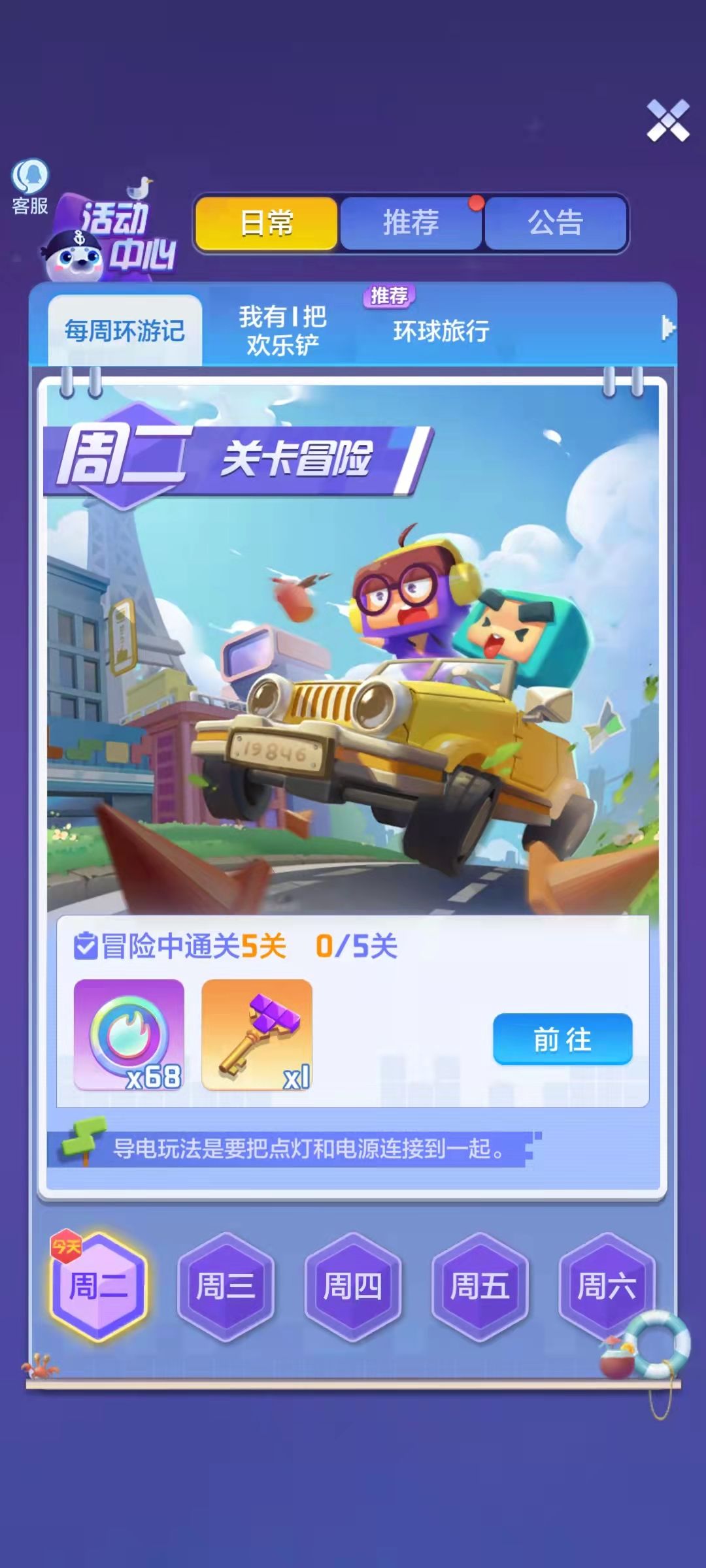 每周环游记准时开启~活动时间依旧是五天,从周二到周六,每天完成对应任务即可获得当日特趣思币和万能钥匙奖励哦~