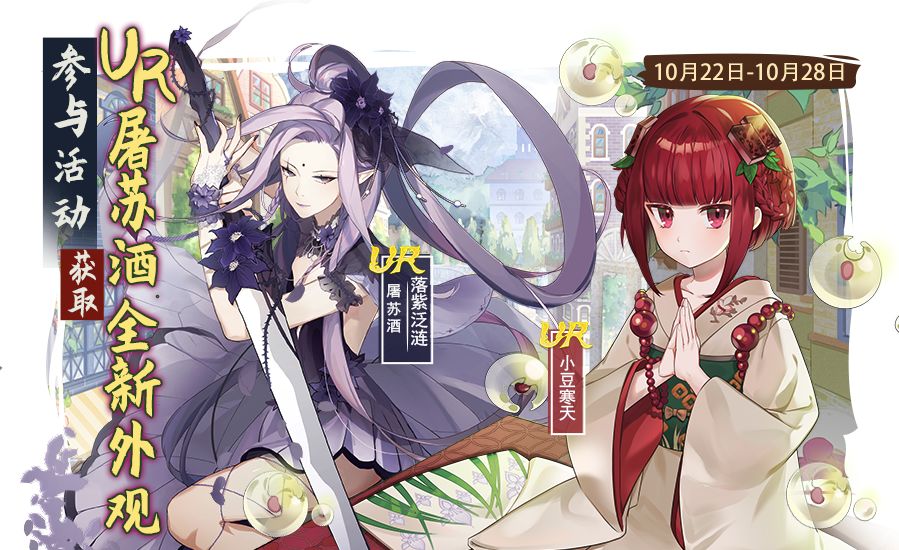 活动描述:活动期间,返场狂欢会主题活动第十四期全新上线。每日完成任务可领取抽奖道具,参与抽奖即有机会获取UR飨灵-小豆寒天、UR屠苏酒全新外观-落紫泛涟,更有珍稀头像框和海量游戏内道具等您来拿。