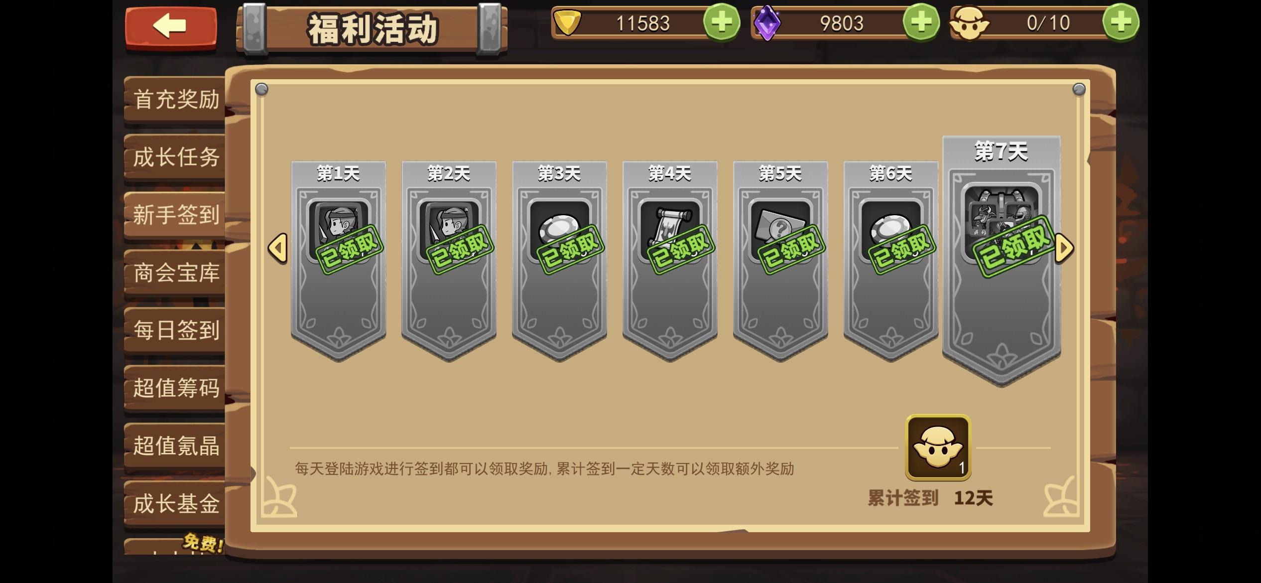 新人签到7天会送自选骑兵,选择皇骑的话,这样就能不靠十连凑齐三皇。有条件的话可以氪一个30块的自选骑士。选择哥布林骑士(长期玩的话),或者选择皇骑,等7天奖励升到A+。