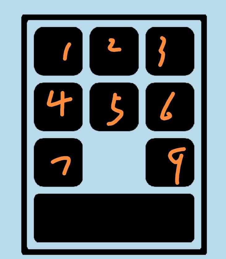 例如:(图2)第一个小空格,对上去就是一个刻度+五个刻度。那(图1)就按1和5,之后以此类推,直至点亮最大的方块