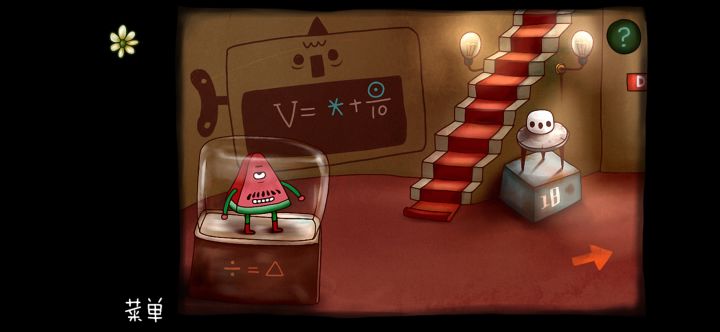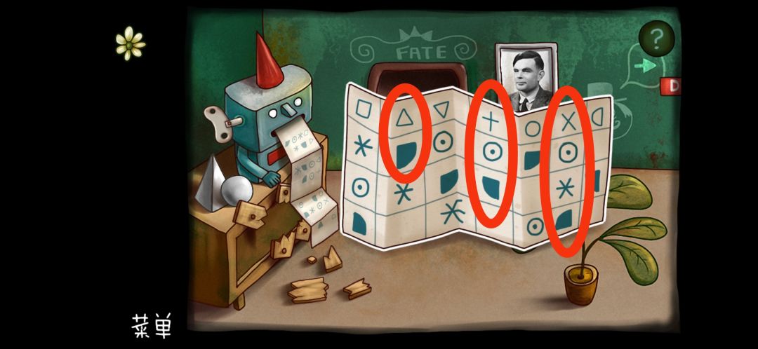 那个坐标图,左上角代表是电压表,根据公式数值计算得4.5(V=4+5/10),剩下三个圆形红色按钮,参照坐标图和符号图进行对照就可以得出最后答案了,÷=△,符号图的三角形下面的黑块就是按钮的形状,+号和×号下面的黑块也是,一一对照就行了。