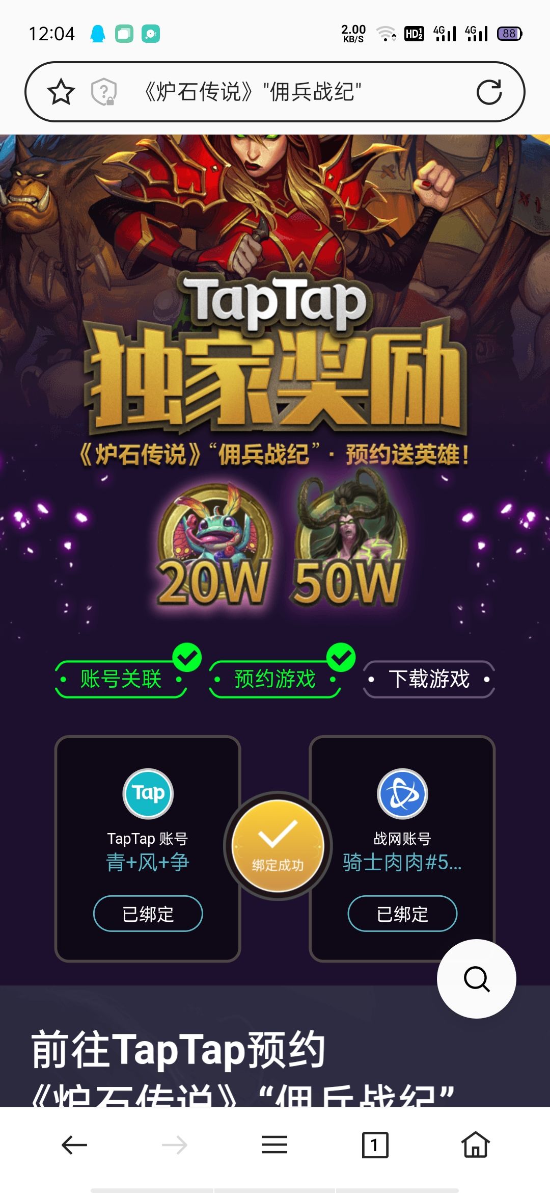 我平时在平板上玩炉石,看到预约有奖励,这不冲TMD。