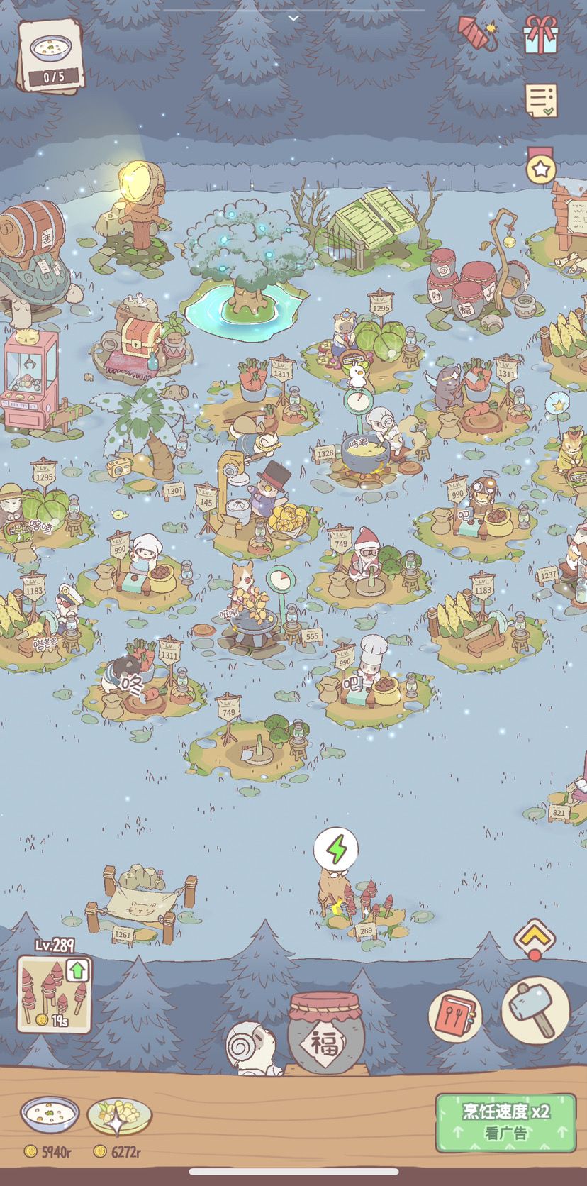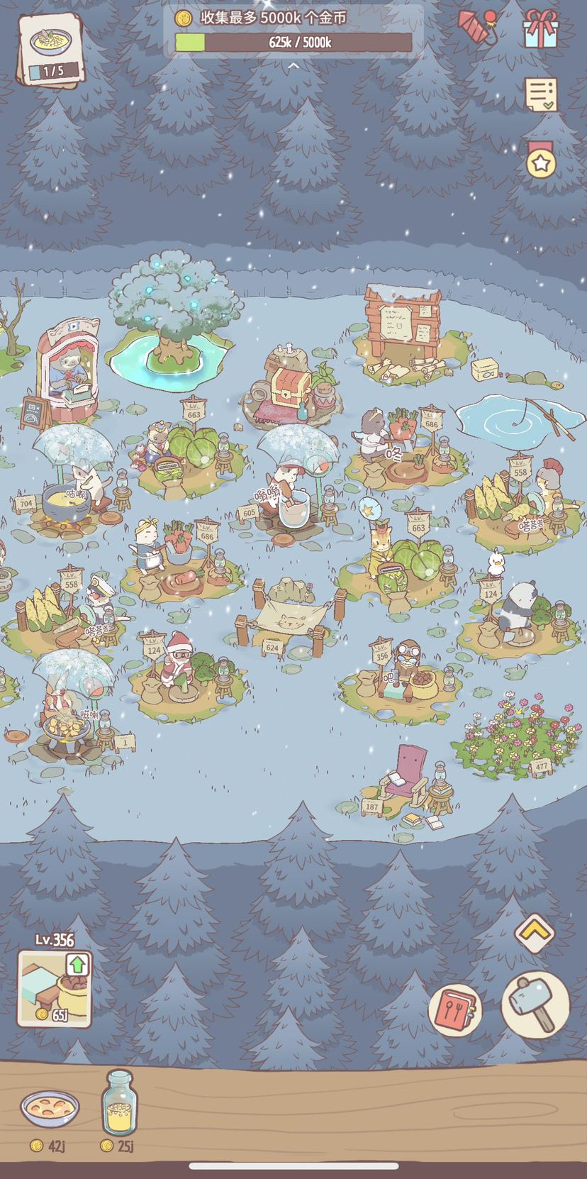 现在更新到1.6.2啦,昨天早上睡醒发现可以解锁下雪天啦,真的太太太可爱拉 ,救命 !光看他们干活都能看一上午,每天都在肝🤣
