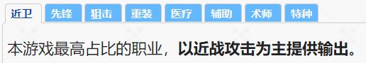 强攻手:俗称群攻近卫,这种近卫可以阻挡2-3个敌人,并且可以同时攻击等于阻挡数的敌人。