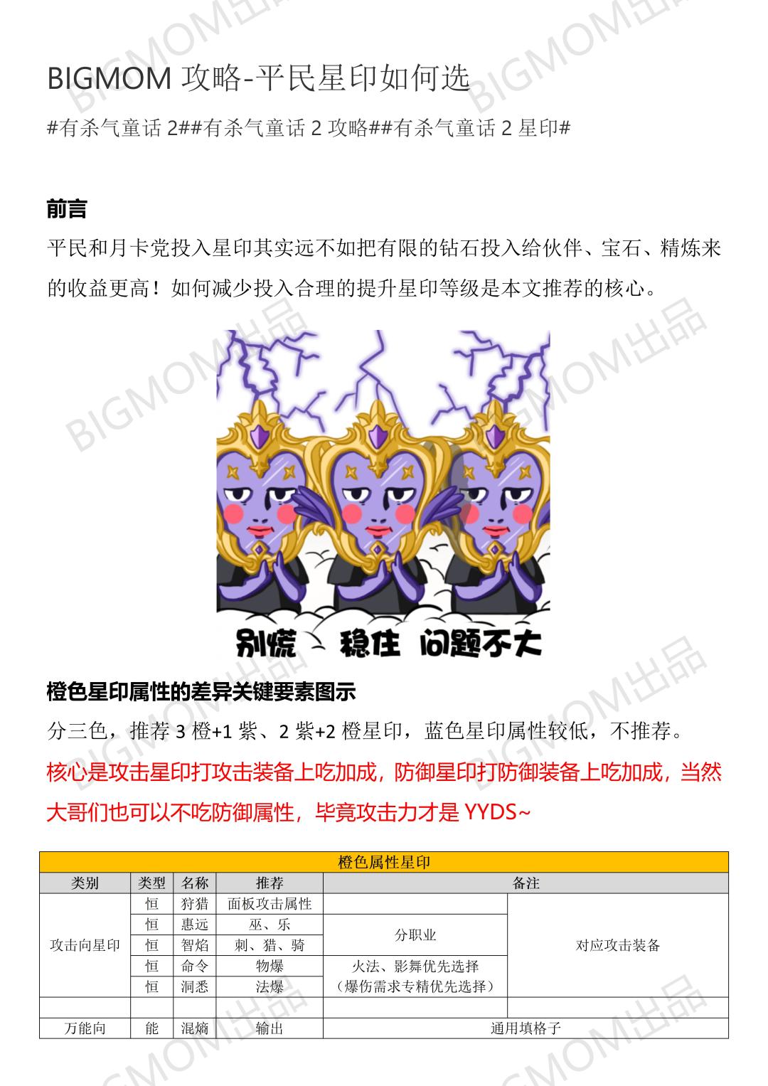 BIGMOM攻略-平民星印如何选