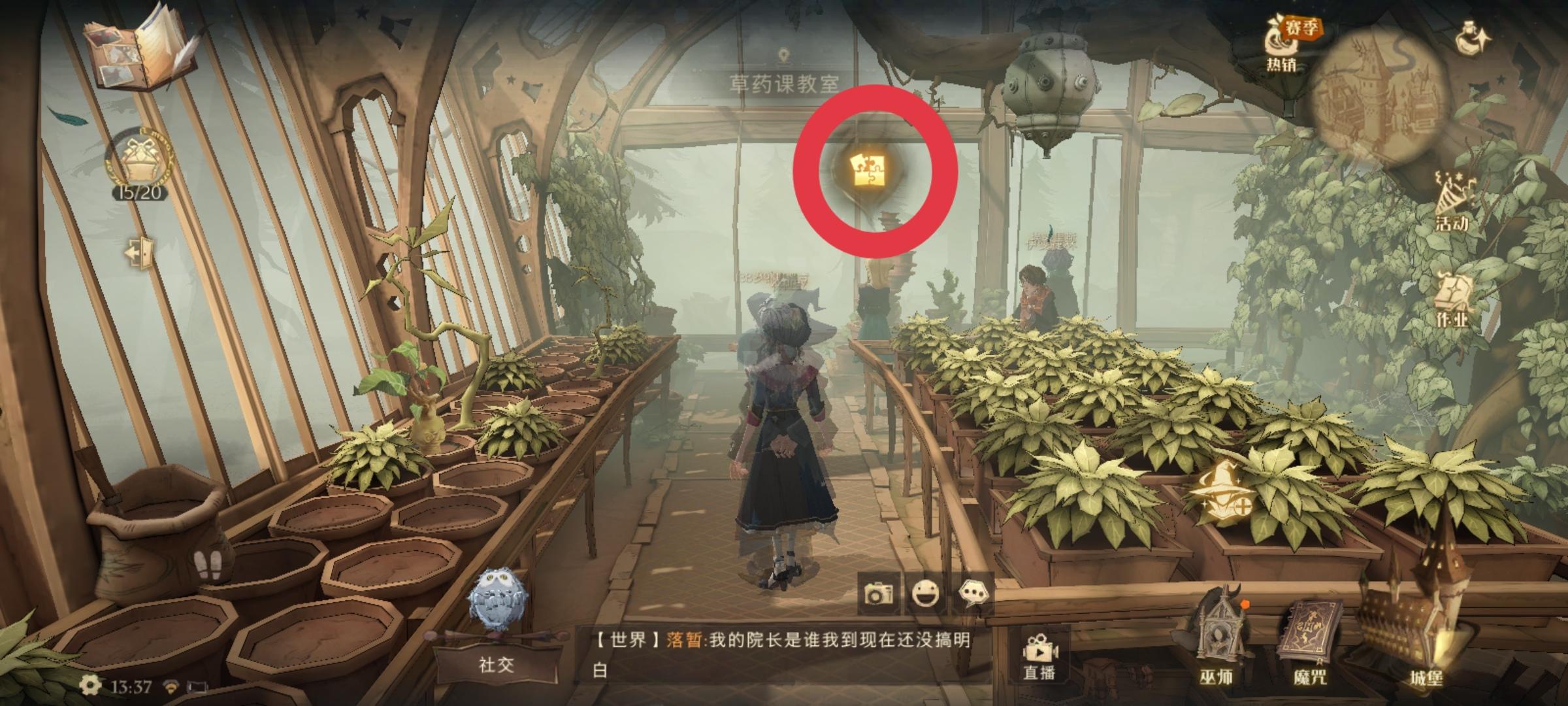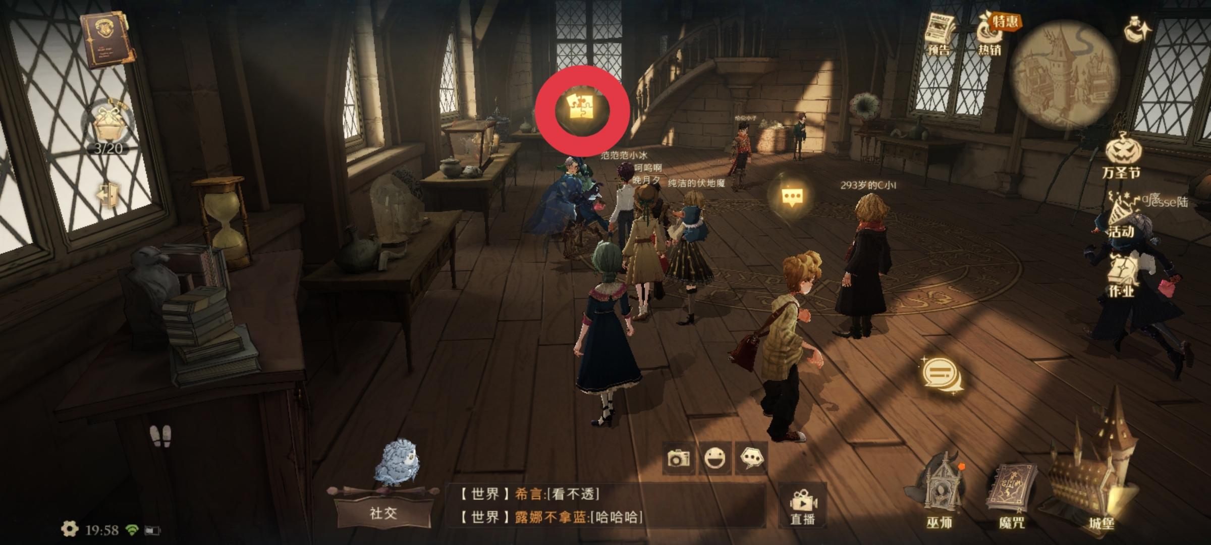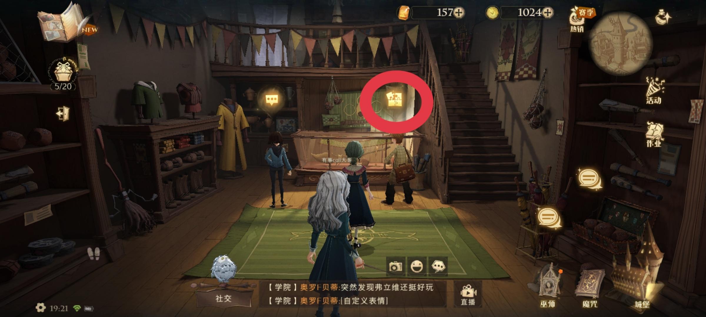 进入霍格沃茨礼堂,直走到头,会出现拼图标志,点击进行对话,然后点击图三圈出的金色小球即可