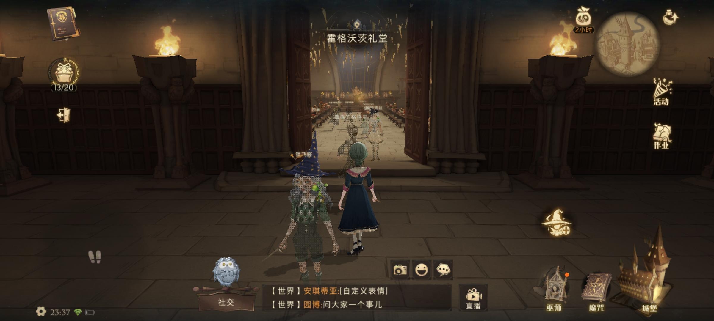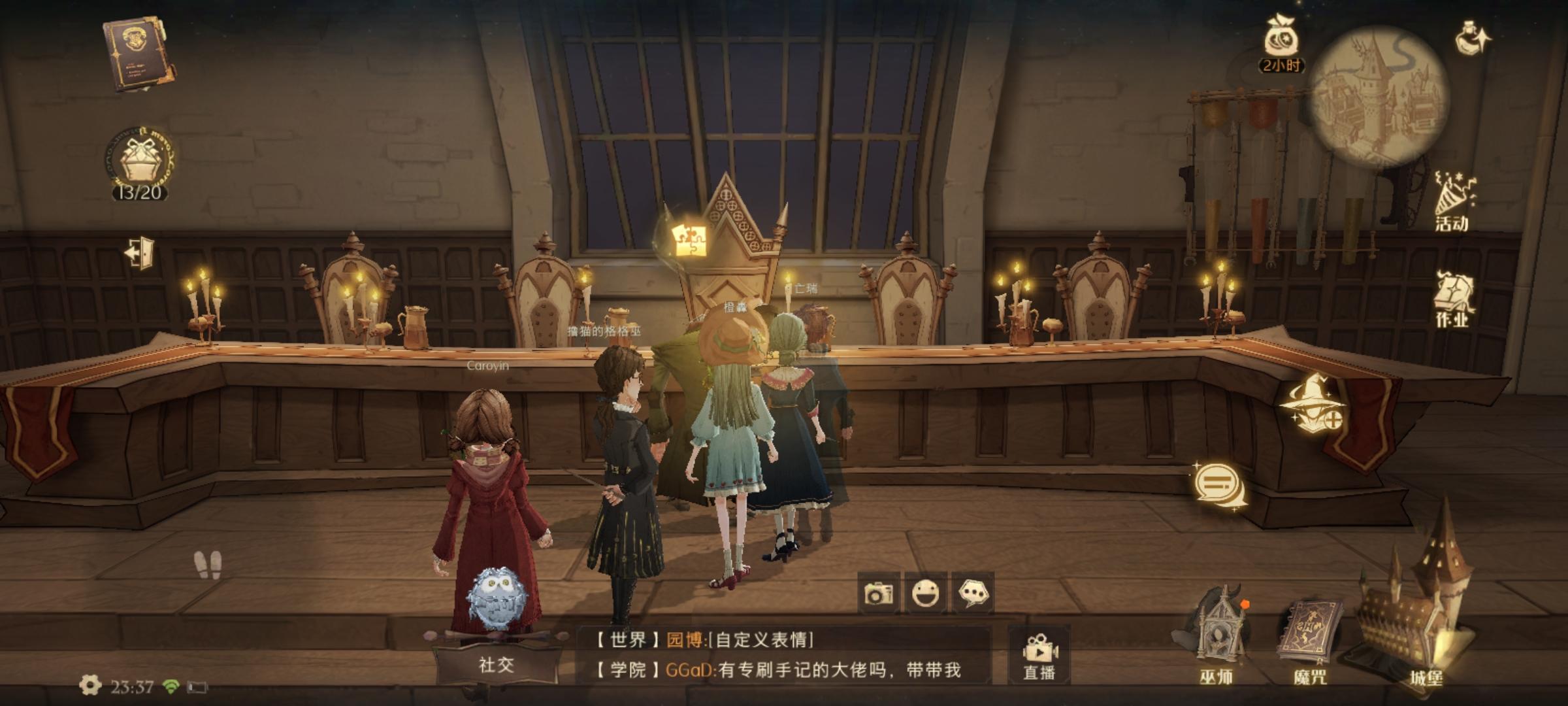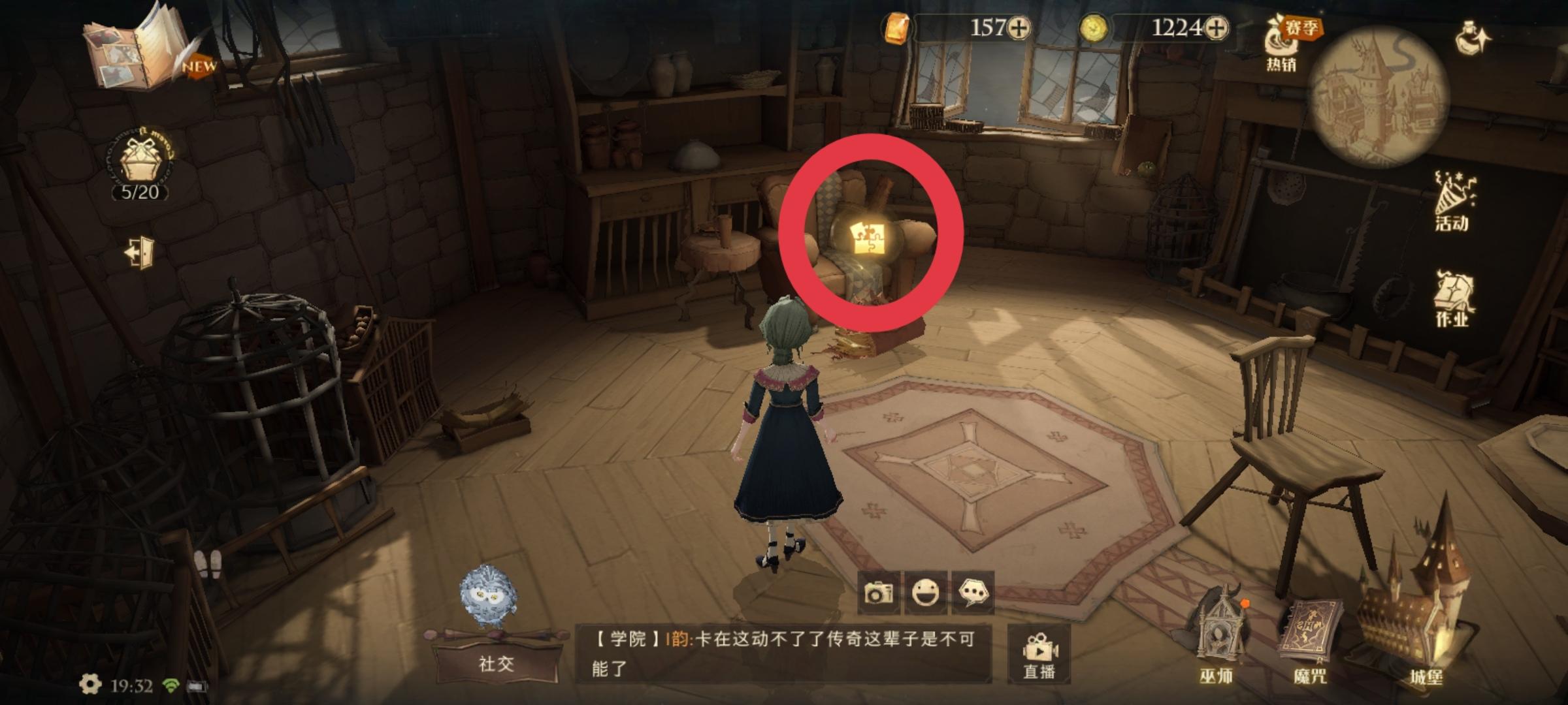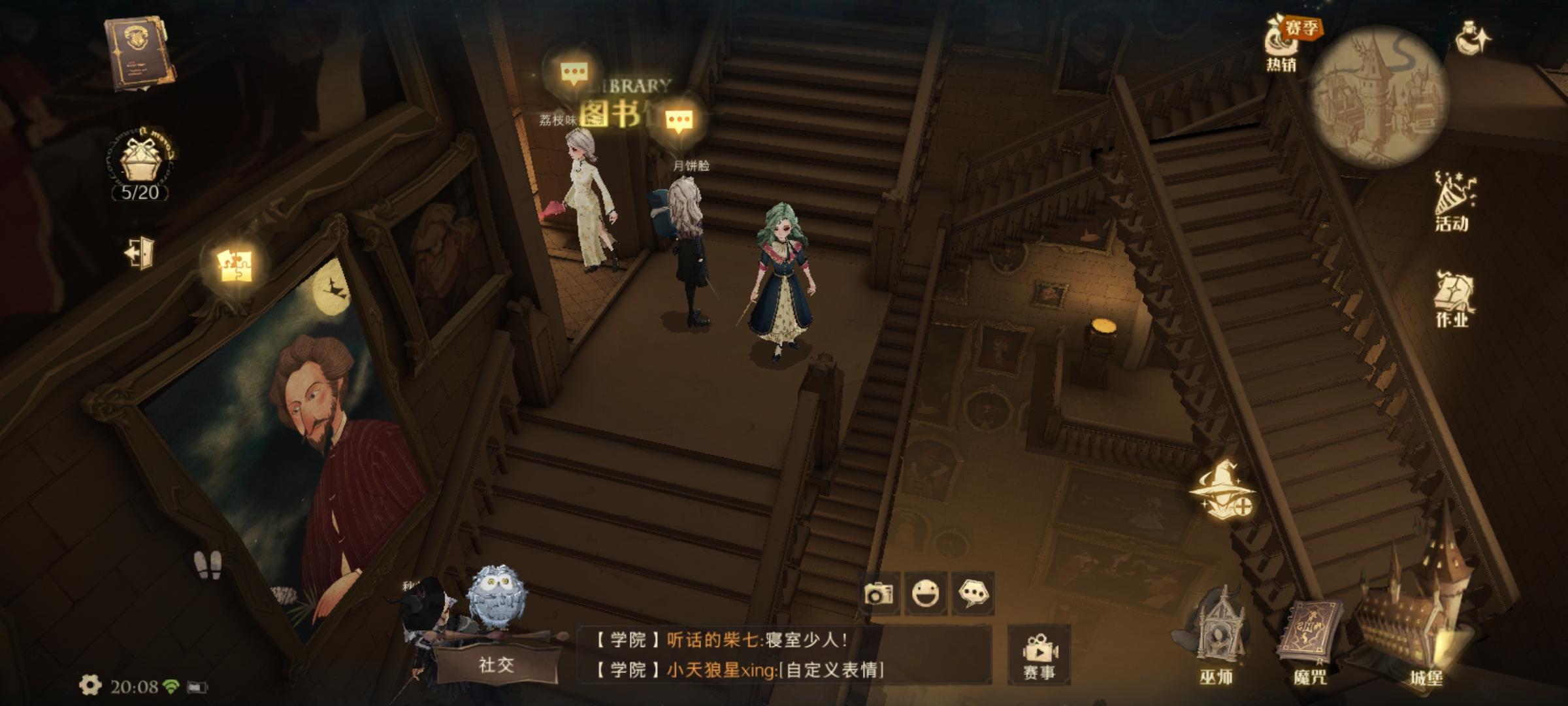 进入霍格沃茨礼堂,直走到头,会出现拼图标志,点击进行对话,然后点击图三圈出的金色小球即可