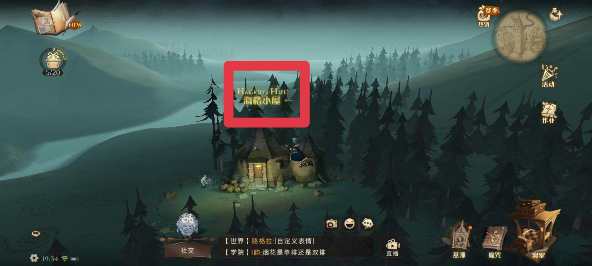前往海格小屋(图二方向),点击''海格小屋''四个字(图三),进入后点击拼图标志(图四),对话进入战斗(自己配牌),战斗胜利即可