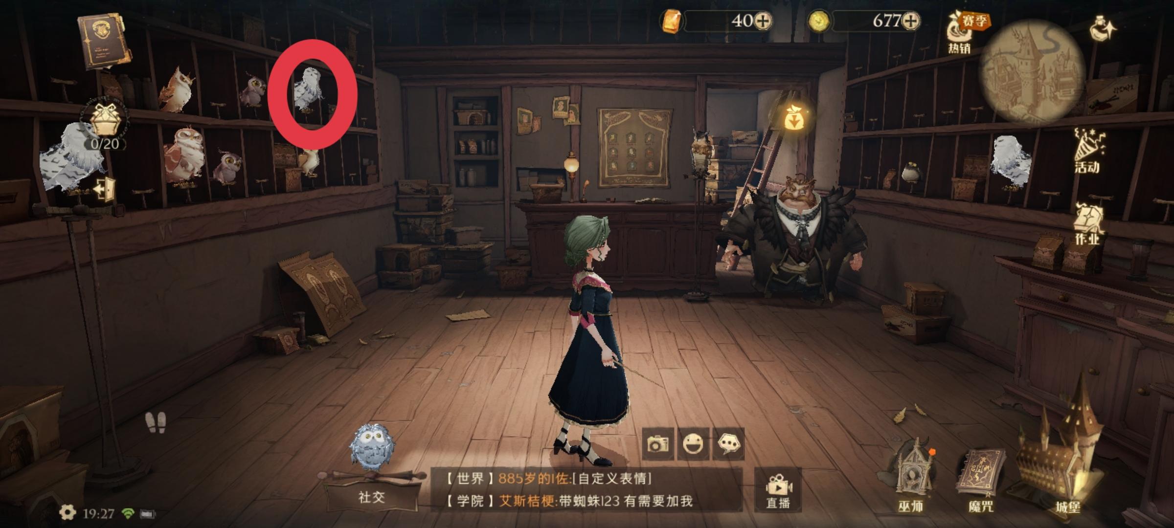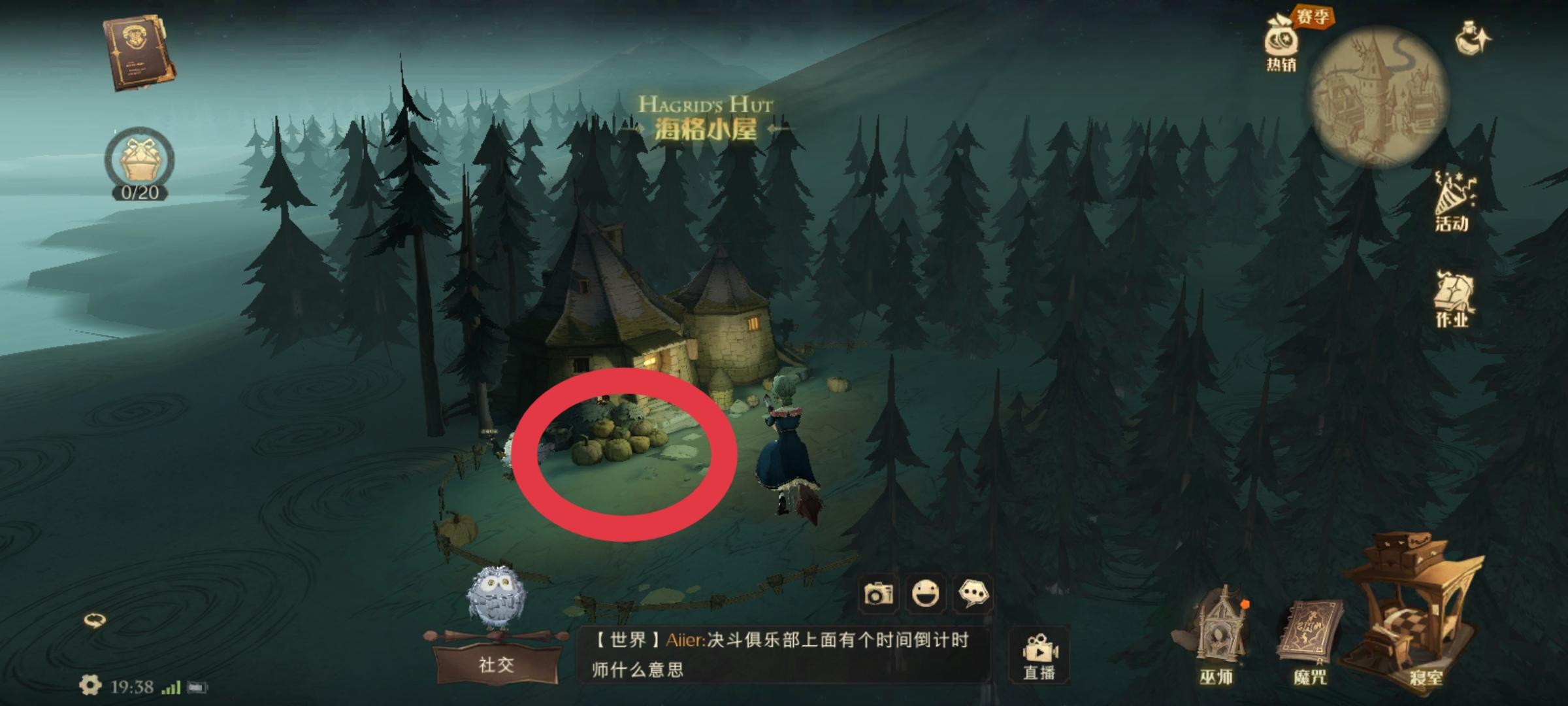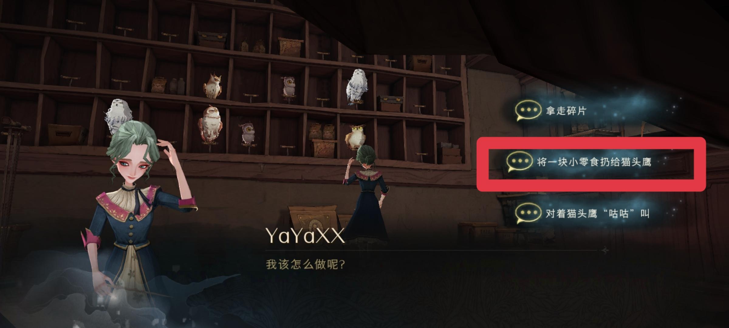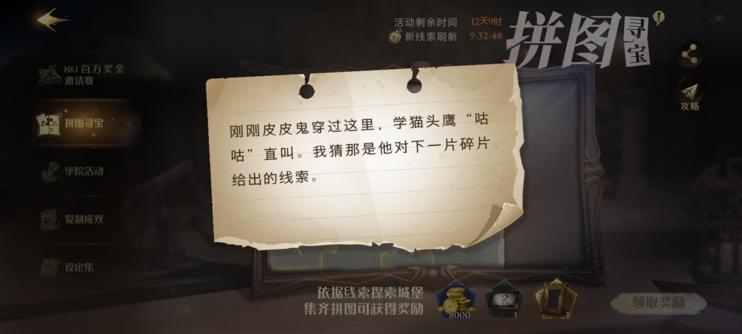 去对角巷的猫头鹰邮局,走到图二的红圈鸟前,会出现拼图标志,然后对话,选择第二个选项即可