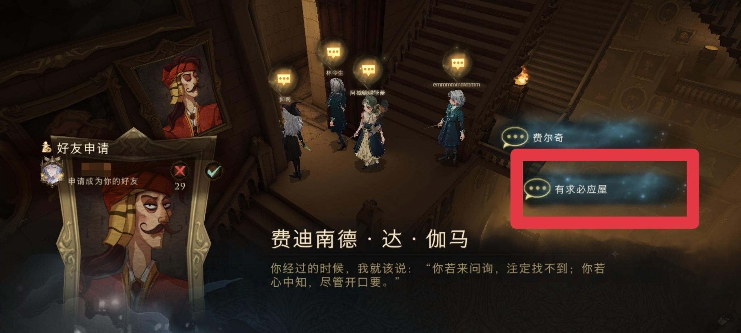 从黑魔法防御课教室出来即可看到拼图标志(图二),点击进行对话,选择''有求必应屋''即可