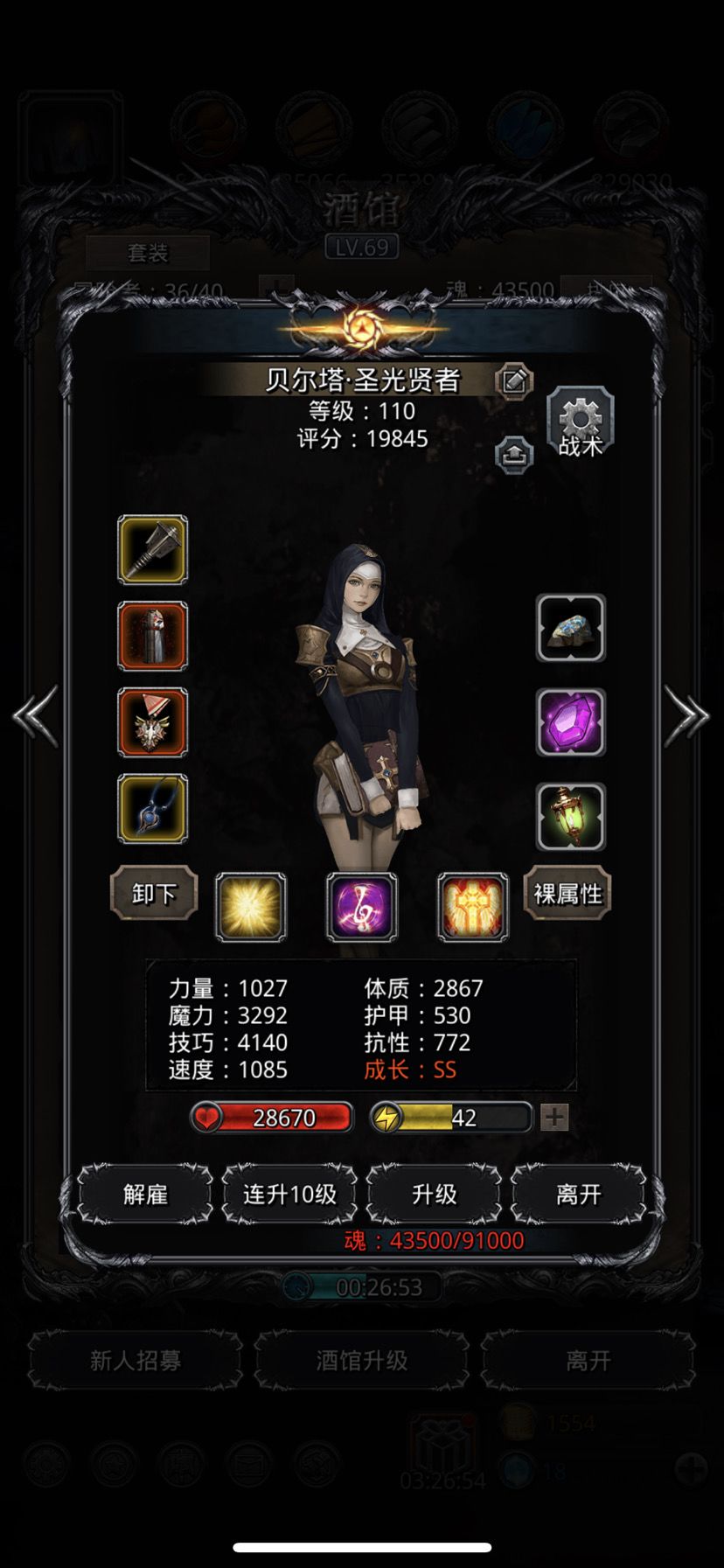 全是破烂战利品,技巧+7.3的战利品都给用上了,魔石一个70副本,一个64技,麻了。这都过了,还余七八秒。只要2分40幻境死之前火法奶一口加技巧,一秒咒火直接掉30000+。记得把传猎这种开猎龙,别给咒火buff顶了。
