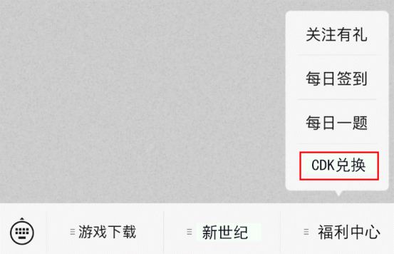 第一步:关注【数码宝贝新世纪手游】公众号,点击菜单栏【福利中心】-【CDK兑换】;