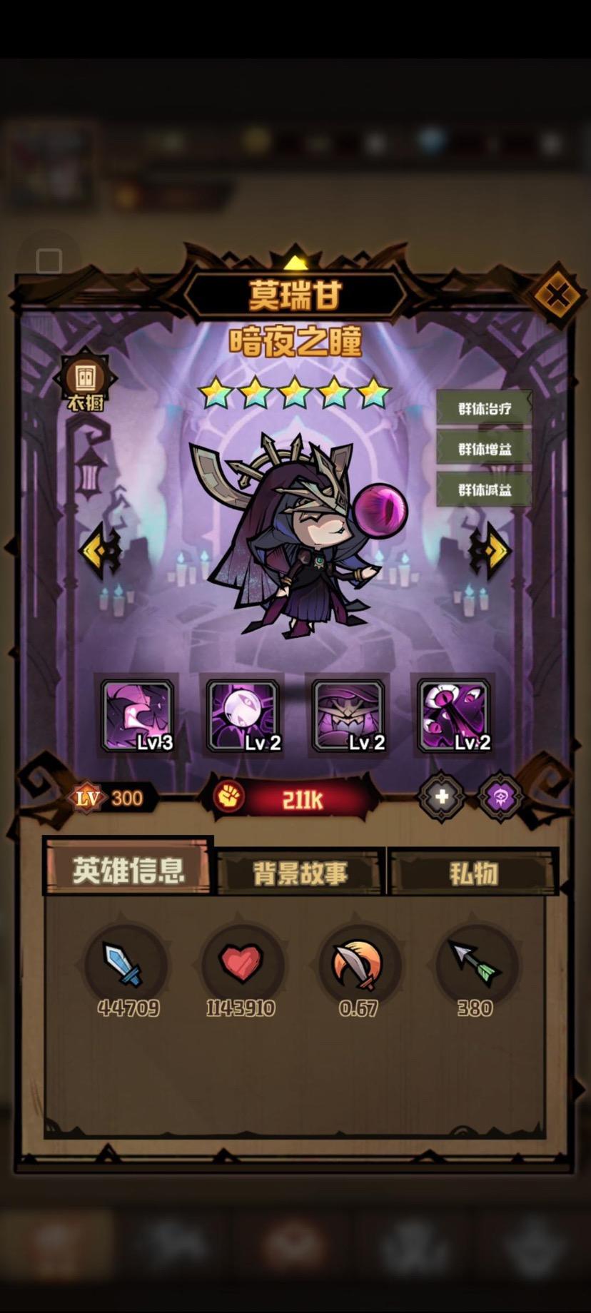莫瑞甘虽然不能提供眩晕,但是能够给队伍补充血量,被动在攻击敌人时有概率降低敌方全体的能量,还能增加大范围闪避,获取难度低。星级要求不高,7星(增加被动降低敌方全体能量的概率与数值)最好