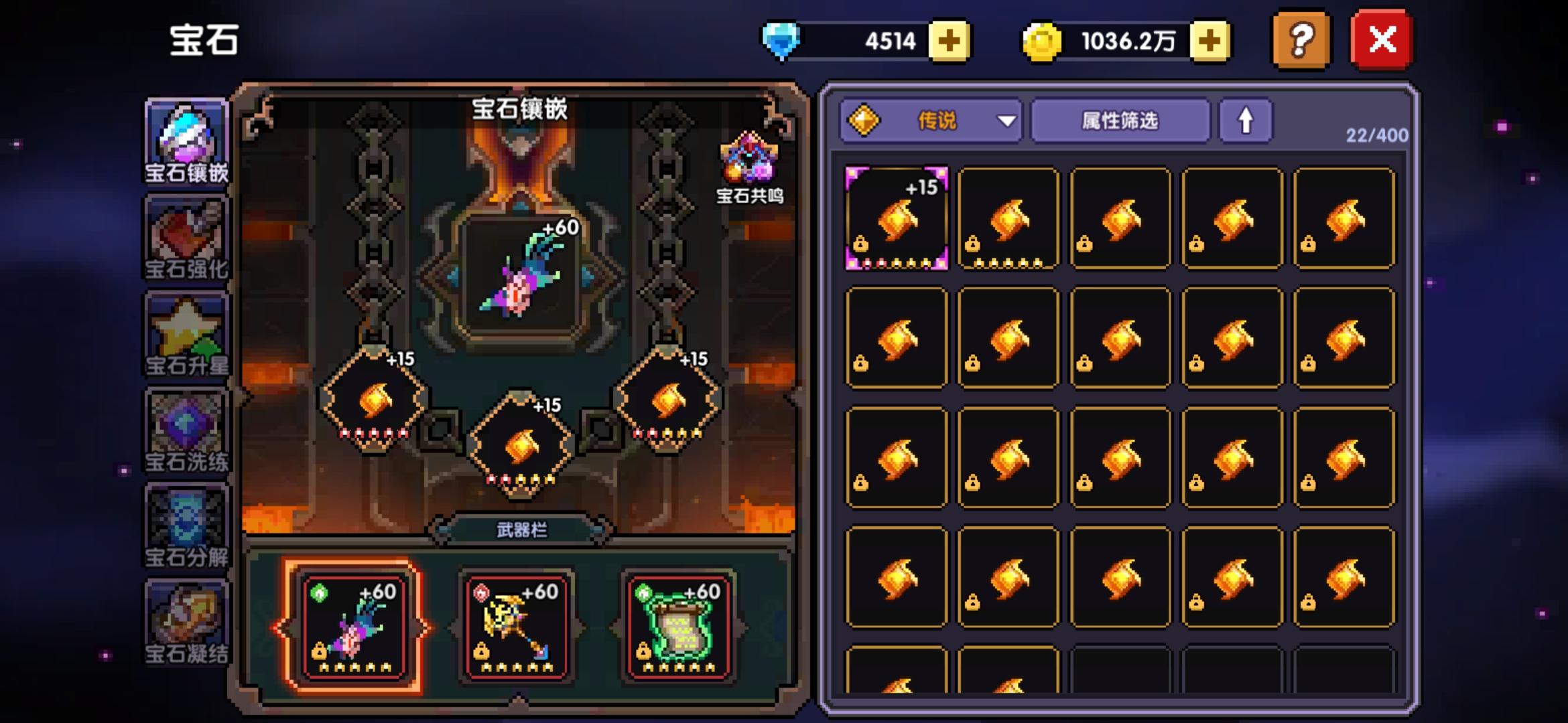 现阶段还是缺橙宝石升星,目测达到三系成型还要2个多月。