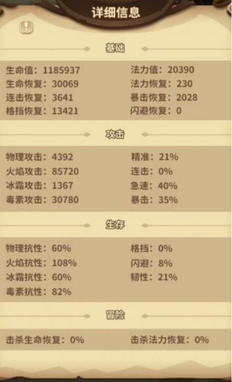装备属性首选主火伤+次火伤次生命,主属性要重铸满值;强化等级25以上为佳。