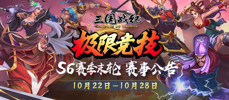 由于版本更新原因,原定于10月21日—10月27日极限竞技末轮赛事时间延期至10月22日—10月28日,望主公互知,祝主公武运昌隆。