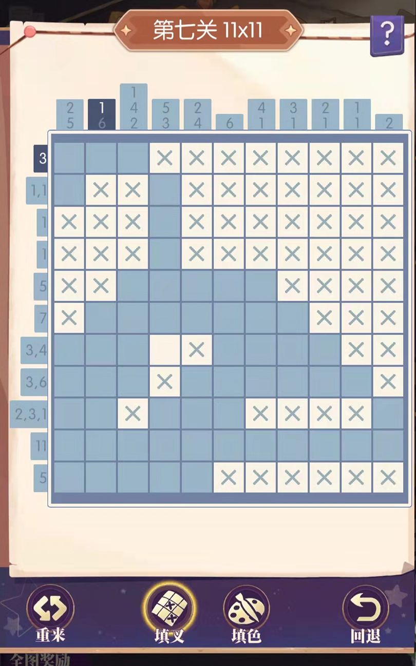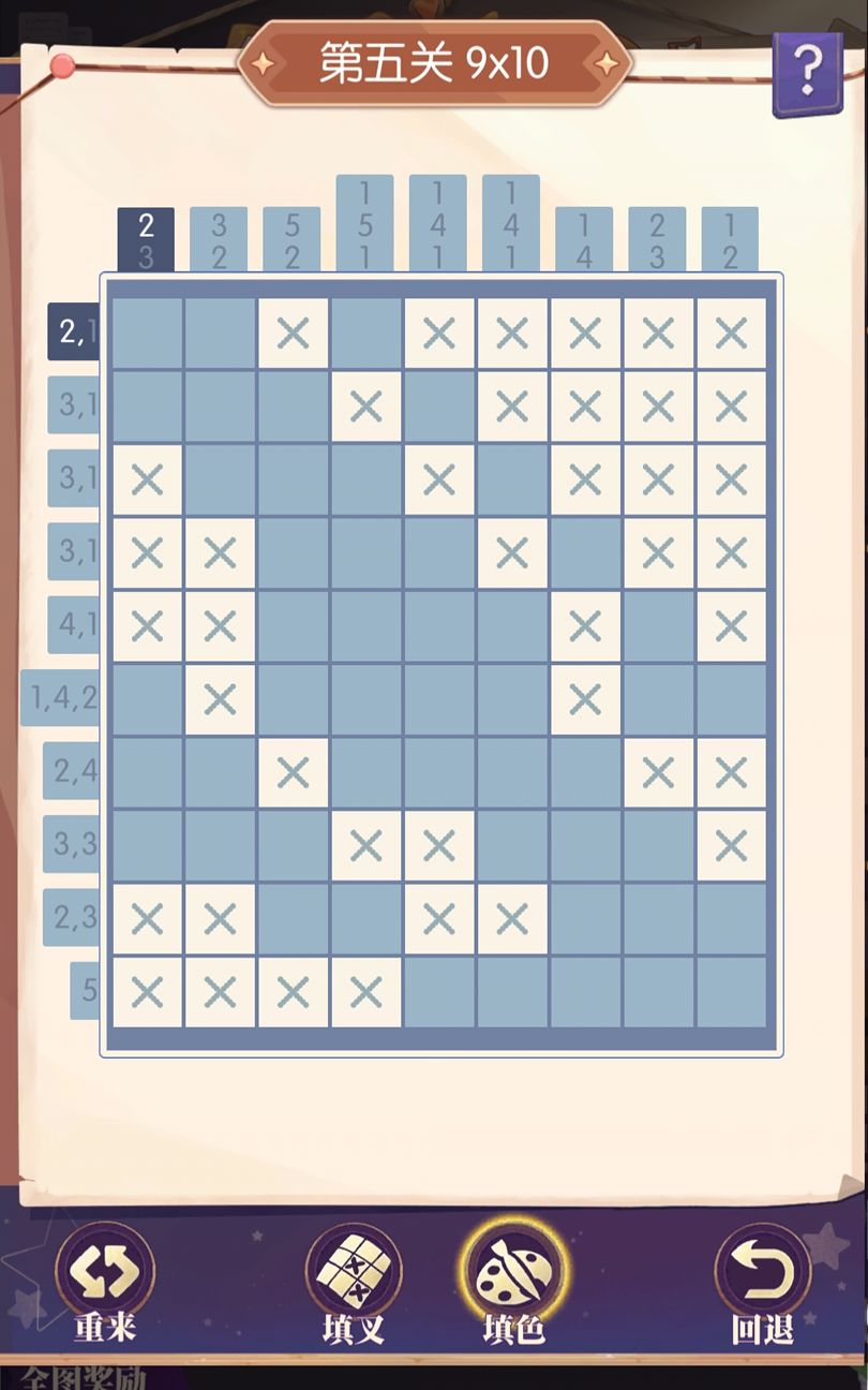 5,本质上就是个逻辑推理玩法,小诀窍就是从0开始填叉(该列/行全部为×),或者从最大数开始填色(该列/行全部为填色格)。如最小数不为0,则建议从最大数数的开始填色。然后进行横向纵向交叉推理,过程中可能会遇到少量二选一的情况,可进行实际推演。实在不想研究,就抄作业吧,本攻略将做持续更新。