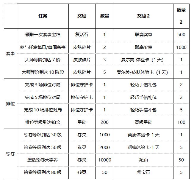 完成任务即可领取赛事、排位、绘卷专属奖励!