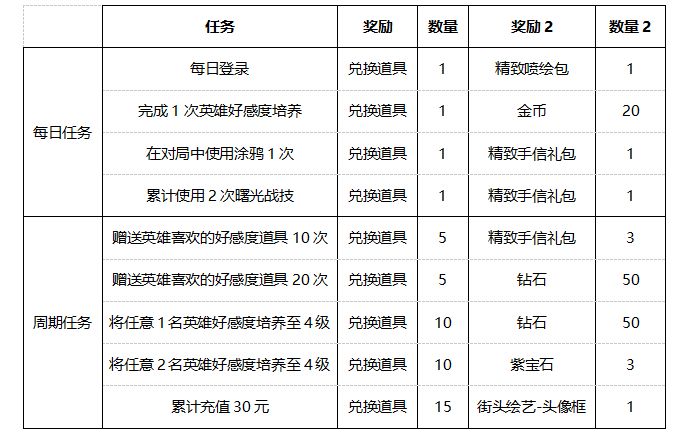 a. 完成活跃任务即可获取头像框和兑换道具,消耗兑换道具即可兑换喷绘、精致喷绘包等;