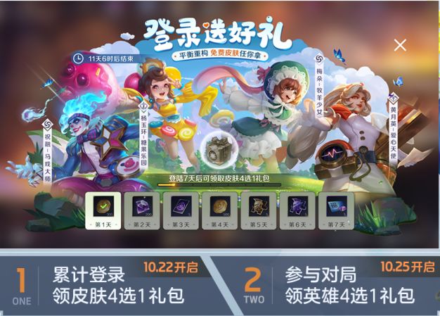 活动1:【登陆送好礼】 平衡重构,免费皮肤任你拿!